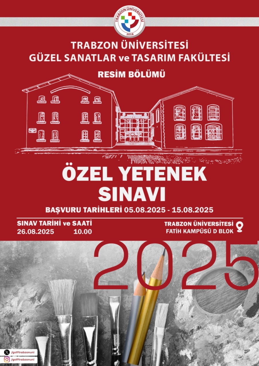 **Önemli*: Özel Yetenek Sınavı başvurusu yapan adaylar onaylanmış sınav giriş belgelerini 22.08.2025 tarihinde, saat 10.00 itibariyle sistem üzerinden alabilirler. Sınav giriş belgeleri yanında olmayan adaylar sınava giriş yapamayacaktır.