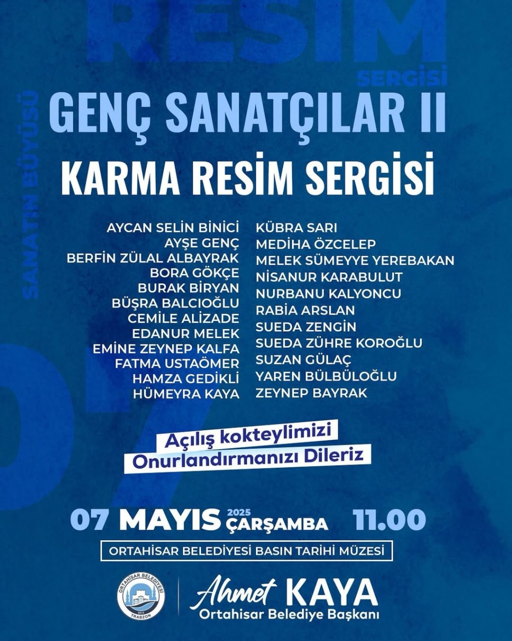 Trabzon Ortahisar Belediyesi ev sahipliğinde Basın Tarihi Müzesi'nde, Fakültemiz Resim Bölümü öğrencileri ve mezunlarının katılım sağladığı "Genç Sanatçılar II Karma Resim Sergisi" düzenlenecektir.
