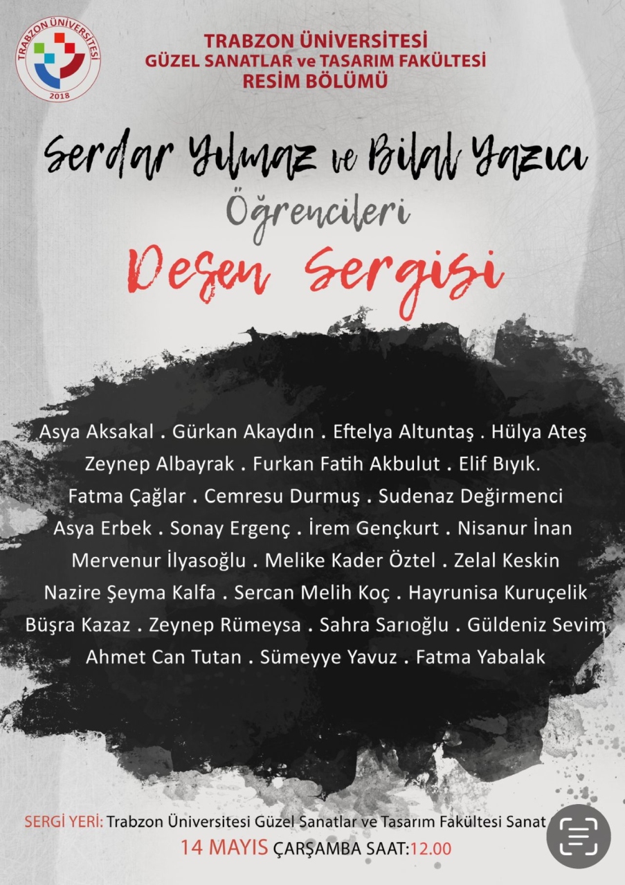 Fakültemiz Sanat Galerisi'nde, 14.05.2025 tarihinde saat 12.00'da, "Serdar YILMAZ ve Bilal YAZICI Öğrencileri Desen Sergisi" açılışı gerçekleştirilecektir.