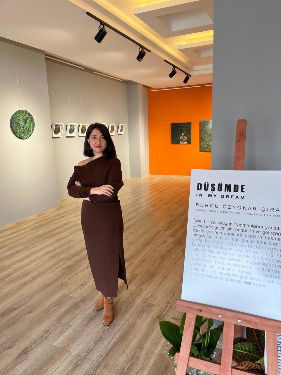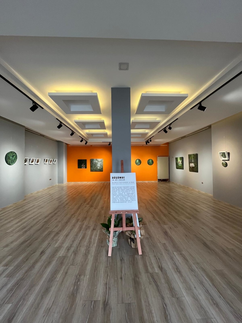“İçsel bir yolculuğun fragmanlarını yansıtan Düşümde; geçmişin, bugünün ve geleceğin içinde gezinen imgelere uzaktan bakmayı amaçlıyor. Kimi zaman çocuk, kimi zaman yetişkin olma deneyimlerinin ruhsal kapılarını aralayan bu imgeler, doğanın kolektif bilincimizdeki serbestliği içinde yer alıp zamanı ve mekânı muğlaklaştırarak düşlerimizi hudutsuzlaştırıyor. Sanatçının yarattığı bu masalsı dünya, izleyicinin düşlerini de harekete geçirerek ortak bir izleğe beraber bakabilmeyi umuyor.”