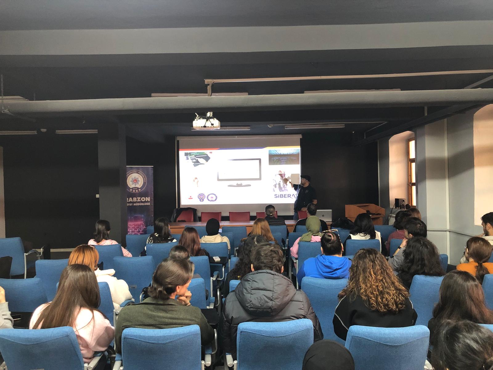 Trabzon İl Emniyet Müdürlüğü Siber Suçlarla Mücadele Daire Başkanlığı bünyesinde başlatılan internet bağımlılığı ve bilinçli internet kullanım projesi SİBERAY faaliyetleri kapsamında, Trabzon İl Emniyet Müdürlüğü Siber Suçlarla Mücadele Şube Müdürlüğü’nde görevli Siber Suç Soruşturma ve Araştırma Uzmanı İlhan TOZLUYURT tarafından fakültemiz personel ve öğrencilerine yönelik “Temel Siber Güvenlik, Bilişim Suçları, Sosyal Medya ve İnternet Dolandırıcılıkları” hususlarında farkındalık oluşturmak amacıyla 30 Ekim 2024 tarihinde eğitim semineri verilmiştir.
