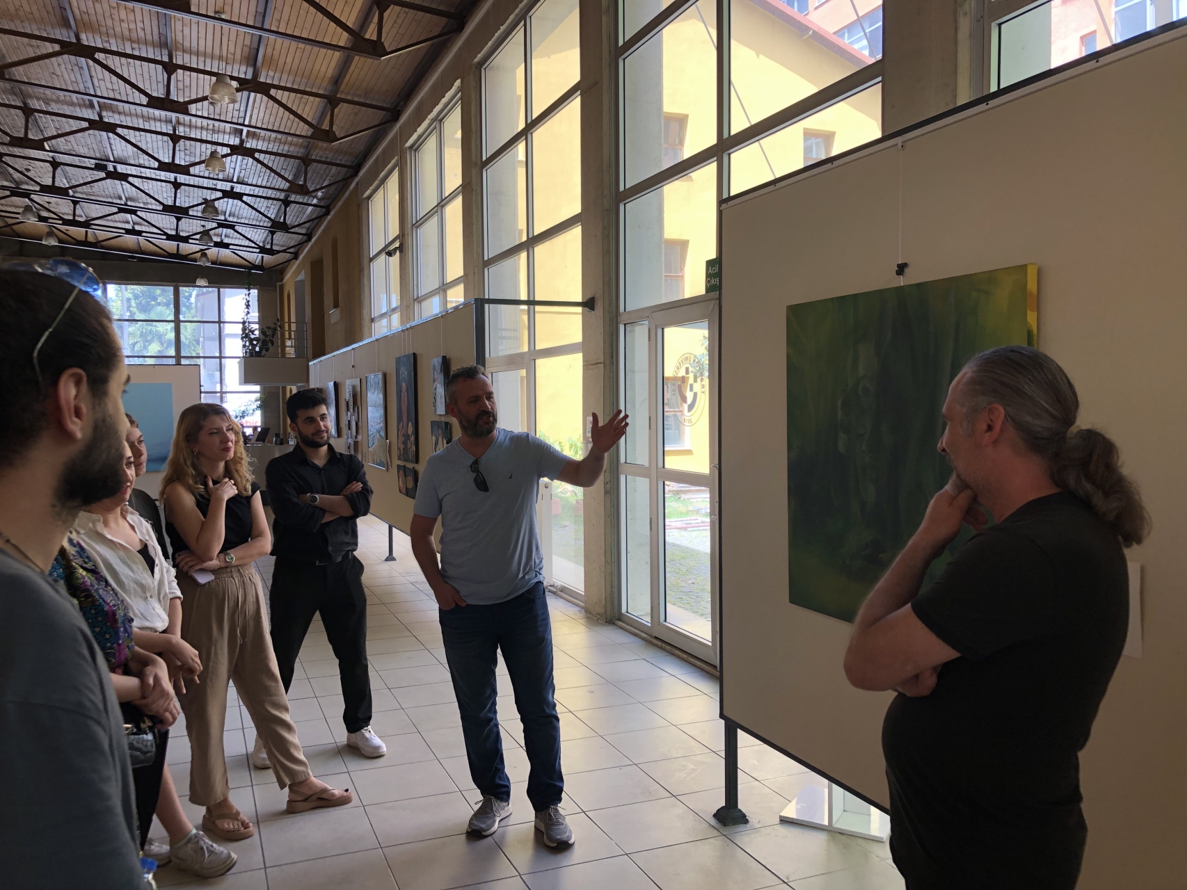 2023-2024 Eğitim Öğretim Yılı Resim Bölümü 4. sınıf öğrencilerimizin mezuniyet sergisi, 13 Haziran 2024 tarihinde fakültemiz resim galerisinde gerçekleştirilmiştir. Öğretim elemanlarımız ve öğrencilerimizin katılımlarıyla gerçekleştirilen serginin açılışı, Bölüm Başkanımız Doç. Dr. Ahmet TÜRE’nin konuşmalarının ardından serginin izlenmesiyle sonlandırılmıştır.