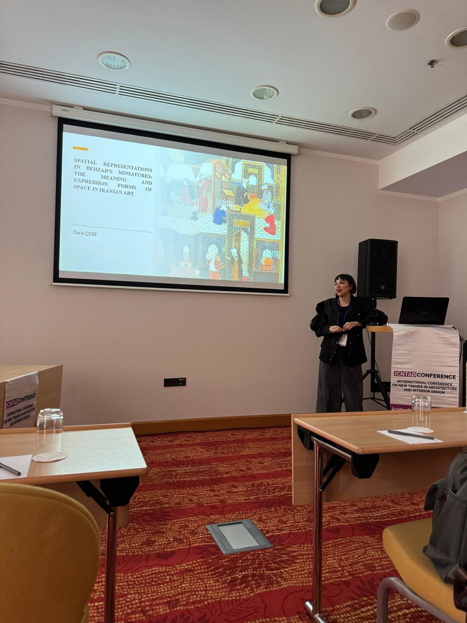 Fakültemiz akademisyenlerinden Dr. Öğr. Üyesi Sara ÇEBİ, 19-21 Nisan 2024 tarihleri arasında Macaristan, Budapeşte’de düzenlenen "International Conference on New Trends in Architecture & Interior Design" adlı sempozyuma katılmıştır. Sempozyum kapsamında "Spatial Representations in Behzad's Miniatures: The Meaning and Expression Forms of Space in Iranian Art" başlıklı bir sunum gerçekleştirmiştir.