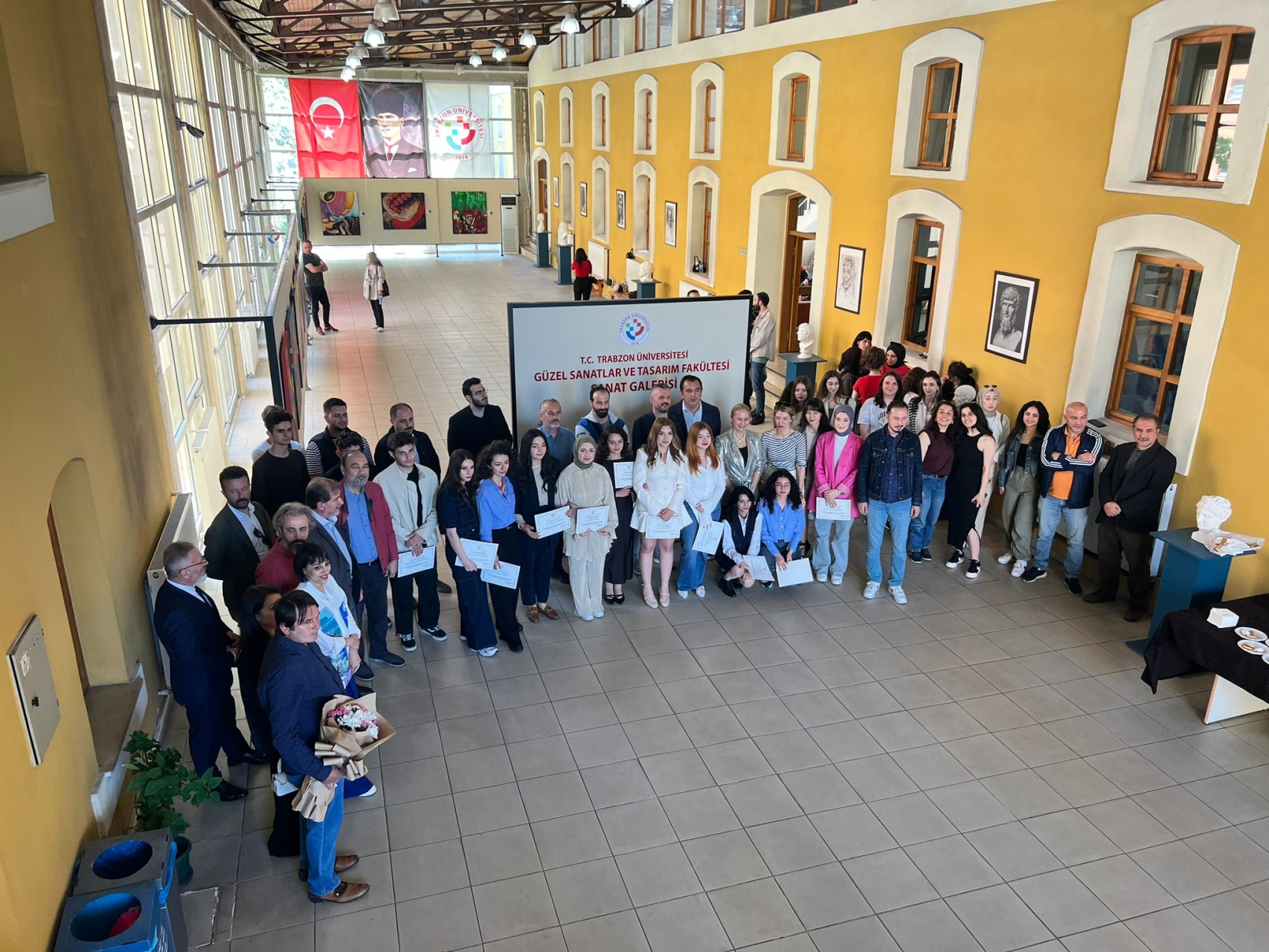 Fakültemizin bünyesinde bulunan sanat galerisinde, 22-31 Mayıs 2024 tarihleri arasında Öğretim Elemanlarımızdan Öğr. Gör. Serdar YILMAZ ve 2. Sınıf Atölye öğrencileri Yaren Bülbüloğlu, Kübra Ertem, Sueda Zühre Köroğlu, İlayda Doksanbir, Melahat Koço, Kübra Sarı, Mediha Özçelep, Mustafa Kahramantürk, Şeymanur Günbattı, Emine Zeynep Kalfa, Fatma Ustaömer, Rabia Arslan’ın eserlerinden oluşan “KESİŞİM” isimli karma sergisi açıldı.