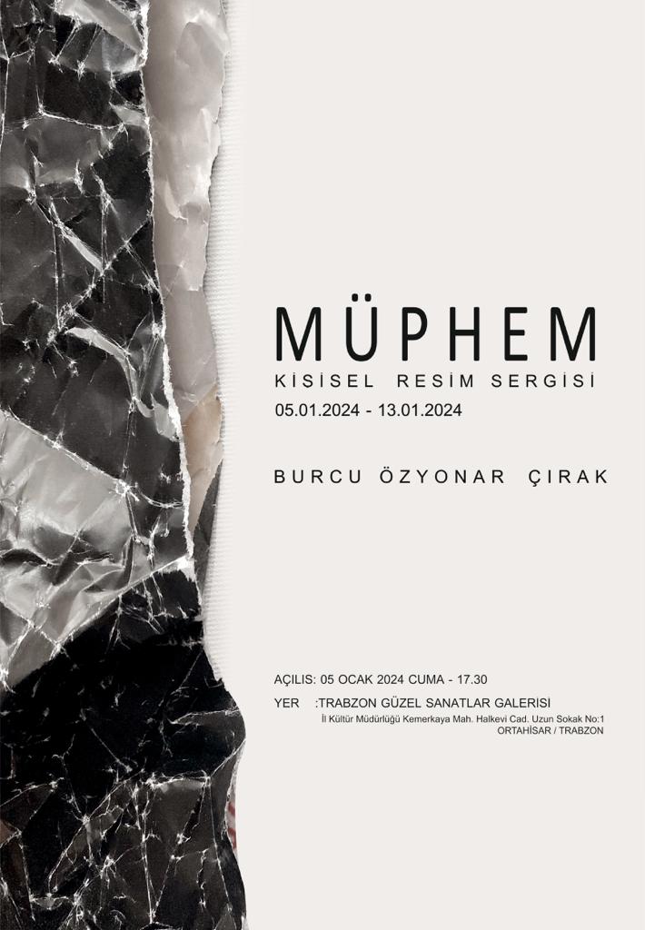 Trabzon İl Kültür ve Turizm Müdürlüğüne bağlı Güzel Sanatlar Galerisinde Fakültemiz resim bölümü öğretim elemanlarından Dr. Öğr. Üyesi Burcu Özyonar Çırak'ın "Müphem" isimli kişisel resim sergisi 05 Ocak 2024 Cuma günü saat 17:30’da Dekanımız Prof. Dr. Raif Kalyoncu, İl Kültür ve Turizm Müdür Yardımcısı Feyhan Kurnaz, TÜRKAV Trabzon Şube Başkanı Kenan Kuru, KPSD Başkanı Mümin Candaş, sanatçılar ve sanatseverlerin katılımıyla açıldı. Sergi 13 Ocak 2024 tarihine kadar açık kalacaktır.