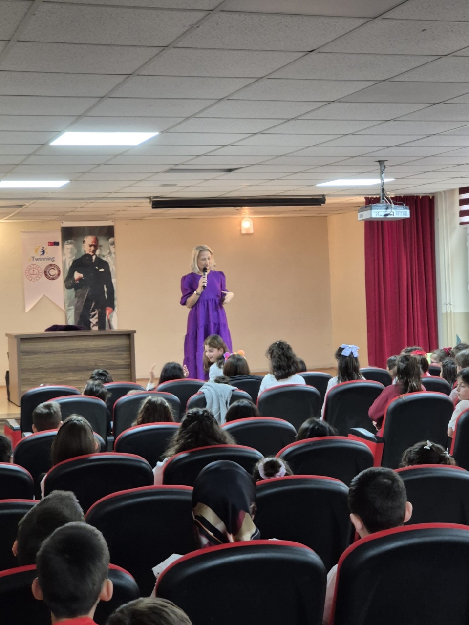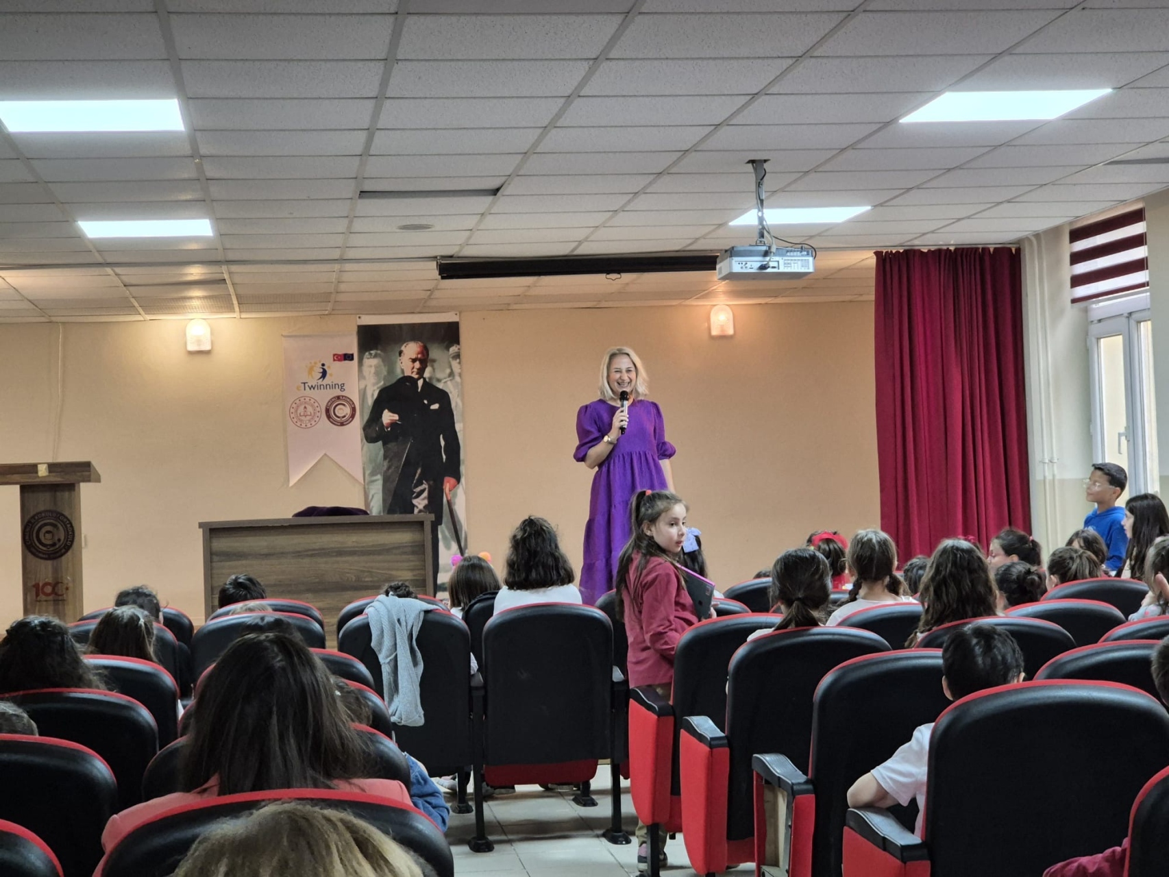 Doç. Dr. İlkay Canan Okkalı E -Twinning kapsamında “Kelimelerin Sihirli Dünyası” isimli projenin diğer paydaş okulları (10 okul) ile 30 Nisan 2025 tarihinde online olarak buluşmuştur. Okkalı, öğrencilerin Füreya Koral ve çocuk kitabı yazarlığı hakkındaki sorularını cevaplamıştır.